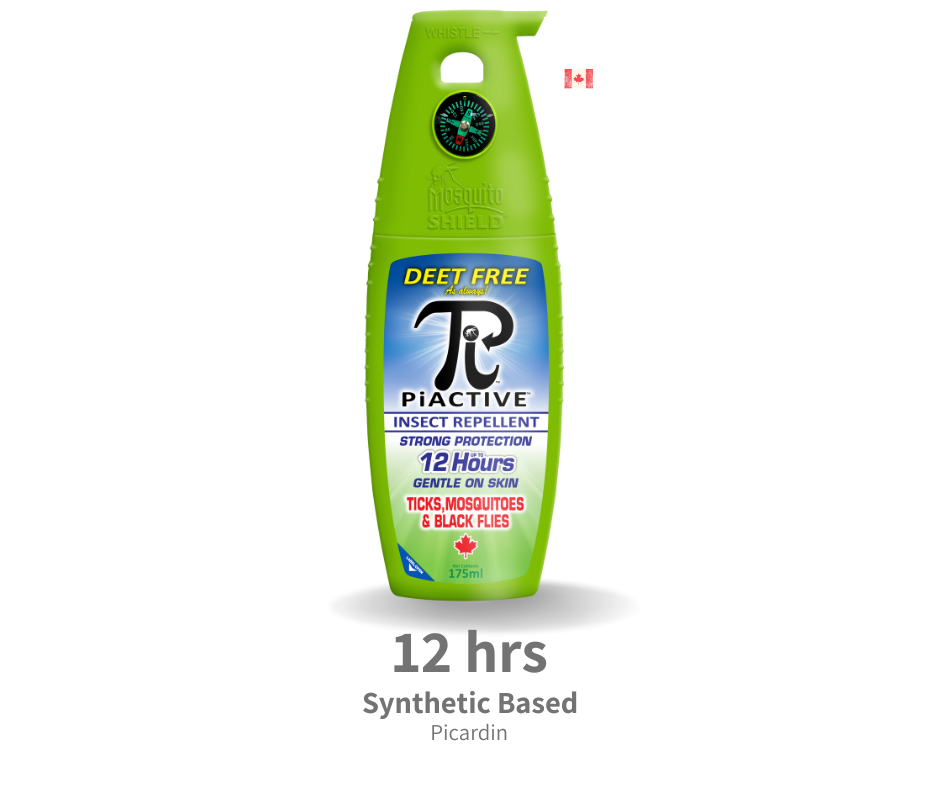 PiACTIVE is a synthetic based repellent that repels a variety of insects, including mosquitoes, ticks, flies, and fleas. It's odorless, doesn't melt plastic, and doesn't feel oily on the skin.